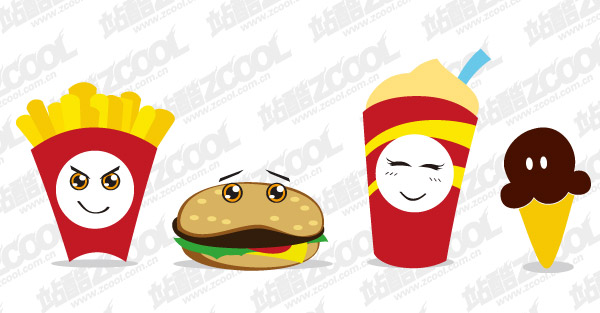 eps format, with jpg preview, the crucial words: Vector fast food, French fries, hamburgers, milkshakes, ice cream, ice cream, vector material
