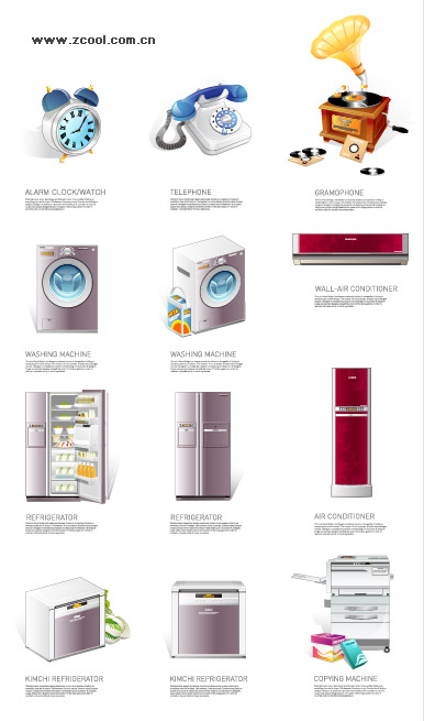 ai formats, including jpg preview, keyword: Vector icon, alarm clock, time, telephone, phonograph, music, washing machines, air conditioners, refrigerators, household appliances, copiers, ovens, vector material