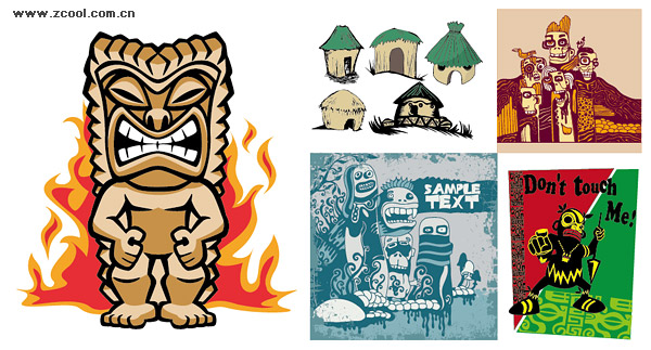 eps format, including jpg preview, keyword: Vector tribes, African tribes, the trend of illustration, cutting-edge design, houses, totem, flame, cartoon, design trends, vector material